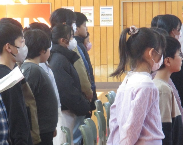 上学年による卒業式予行。