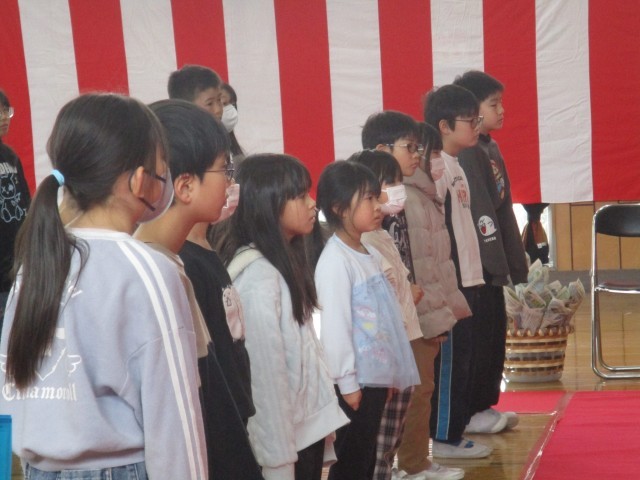 一年間の総まとめにふさわしい、きりりとした態度の子どもたち。