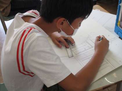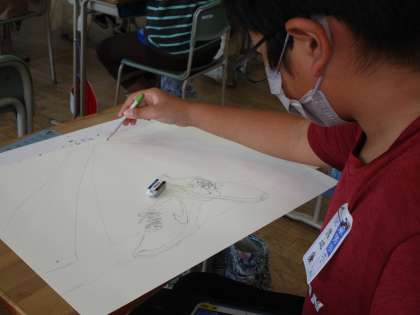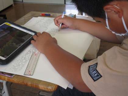 6年生の図工は、以前も投稿した「わたしの大切な風景」の清書です。清書用の画用紙に慎重に描いていました。遠近法を用いた表現が多く、、みんなとてもすてきな構図です。清書用の品質のよい紙に描くと、ぐっと雰囲気がかわりますね。完成が楽しみです。