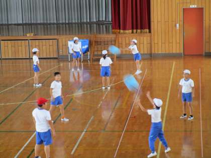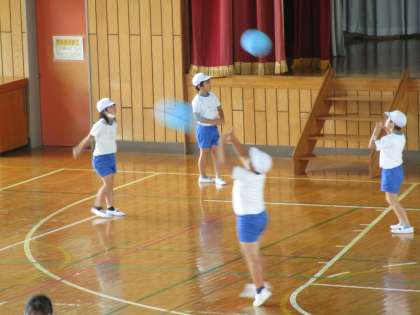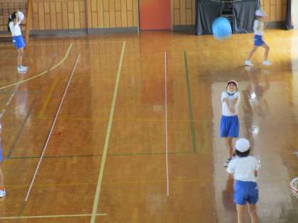 3年生の体育はソフトバレーボールの学習です。やわらかい素材のボールなので痛さや恐怖感はなく、みんな楽しく取り組んでいます。ただ、始まったばかりなのでなかなか思うようにボールを返せません。もう少し練習して、簡易ゲームができるようになるともっと楽しくなりますね。