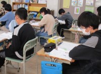 今日はタブレットを使って、3年前の台風19号がどのような被害をもたらしたかをデジタル新聞の記事をもとに調べました。また、郡山市の洪水ハザードマップを見て、自分の家や危険な箇所などを確認していました。