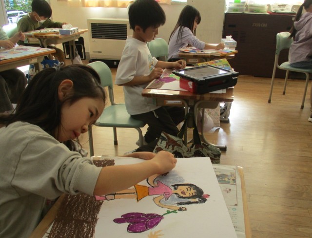 絵の中の子どもたちの手には、大量のさつまいもが。そしてみんなにこやかな表情。わく...