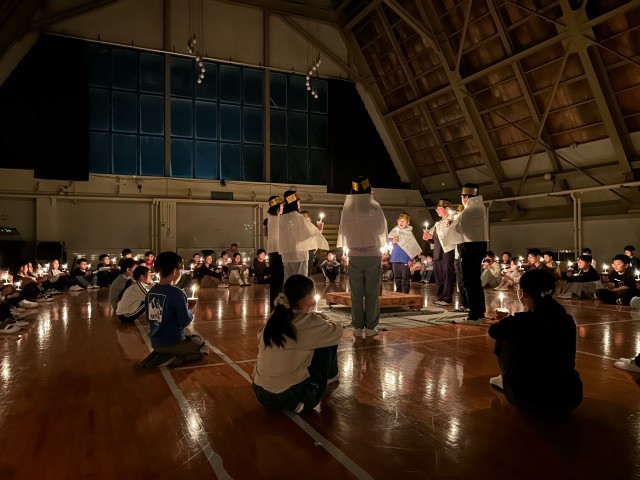 1日目の締めくくりは、キャンドルファイヤーです。レク係さんが考えた企画で楽しい時間を過ごすことができました。子ども達の弾ける笑顔が眩しかったです。最後はみんなでキャンドルに火を灯し、1日を振り返りました。