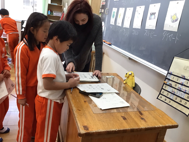 今日は、ジリアン先生と英語の学習をしました。「Hou are you?」とたずねられたときの色々な答え方を学習しました。自分の持っているカードを見ながら、「I'm〜」と友だちと言い合って楽しく活動しました。