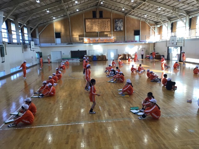 1月13日(火)1時間目、今年初の体育を1・3組で行いました。久しぶりの体育だったので準備運動の後ダンスで体を温めました。2学期のダンス講習会で教わった「ジャンボリーミッキー」は子ども達も大好きです。その後、27日のなわとび記録会に向けての練習を行いました。今年から各種目2分以内の合計記録で競います。1回でも多く跳ぼうと頑張る姿はさすが高学年です。明日は2・3組の合同体育です。