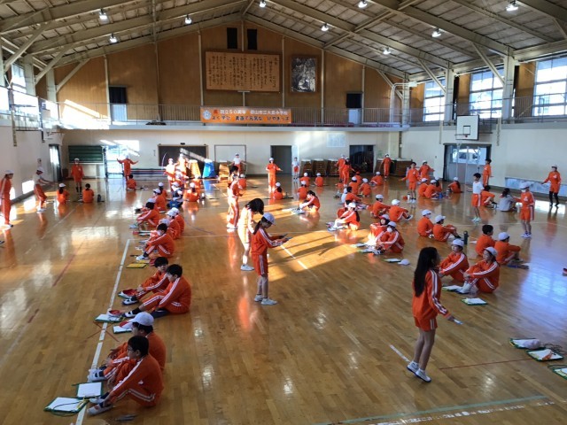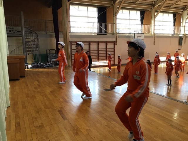 1月15日(木)は、業間が5年生体育館配当のため縄跳び練習を行いました。個人種目に取り組んだり長縄に取り組んだり、それぞれが楽しい時間を過ごしました。6時間目は今年初の学年体育でした。準備運動のダンスでは、3組のダンスリーダーの子ども達がステージの上でみんなのダンスを引っ張ってくれ、全体の動きも揃ってきました。1組は体育館道路側・2組は体育館後方・3組は校庭側の場所で跳びます。縄跳び記録会は、速回し跳び・二重跳びの次に種目跳びの順で進めます。子ども達は何の種目にチャレンジするか気持ちも固まってきたようです。