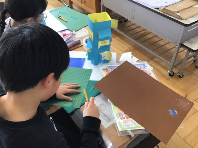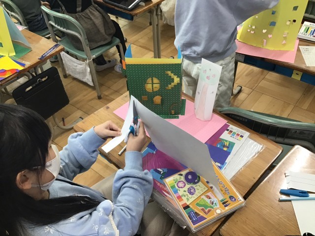今日の図工では、「まどをあけたら」の学習を行いました。カッターナイフの使い方も慣れてきて、イメージを膨らませながら作品をつくることができました。次もカッターナイフを使って作品を作ります。安全に注意しながら、すてきな作品にしたいと思います。