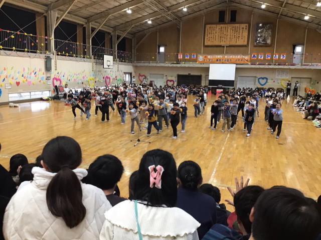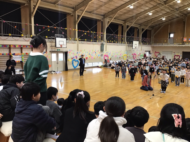 3月3日(火)3、4校時目に全校生で6年生を送る会がありました。1年生は「だい だい だいすき 6 ねんせい!」を発表しました。6年生に大好きビームを撃ったり、可愛らしいツバメダンスを披露したりしました。緊張しながらも、大きな声で堂々と発表することができました。また、ほかの学年の発表もはじめて見たので、目を丸くして楽しんで見ていました。
