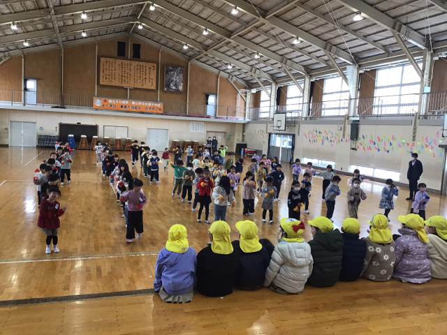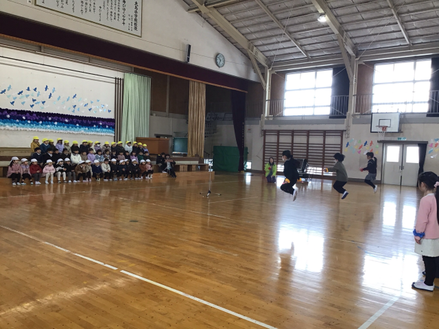 3月4日(水)3校時目に、並木幼稚園の年長組のお友達が遊びに来てくれました。1年生は、歓迎の挨拶の後、「水平線」をみんなで歌い、ツバメダンスやなわとびを披露しました。たくさん練習したツバメダンスを見て「すごい!」と言ってくれていました。代表児童の二重跳びやはやぶさ跳びには、大きな拍手でした!その後は、幼稚園生と1年生がペアになって1年生の教室まで、学校を案内しました。自分たちの使っている教科書やノート、タブレットやふでばこの中を見せて、いろいろなことを優しく教えていました。入学したら、たくさんいっしょに遊びましょうね♩