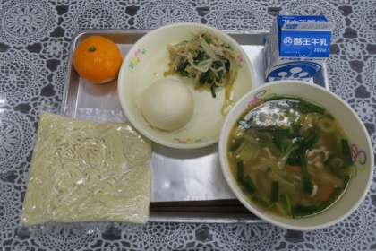 みそタンメン、牛乳、ミニ肉まん、ほうれんそうのナムル