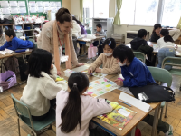 算数の時間、あまりのあるわり算について学習をしました。これまで学習をしているわり算と似ていることと違うところを調べました。半具体物であるおはじきや手描きの丸などを使って、考えることができました。また、かけ算九九を使って考えることもできるようになりました。