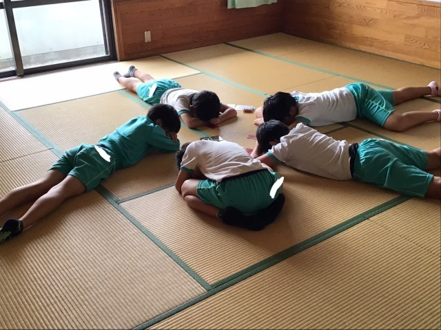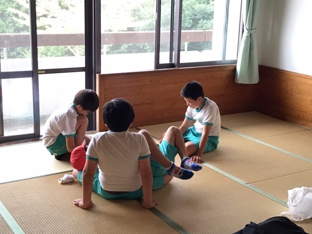 おはようございます。起床時刻6時よりも前に目が覚めた子達もいるようでした。布団を片付けてゆっくりです。
