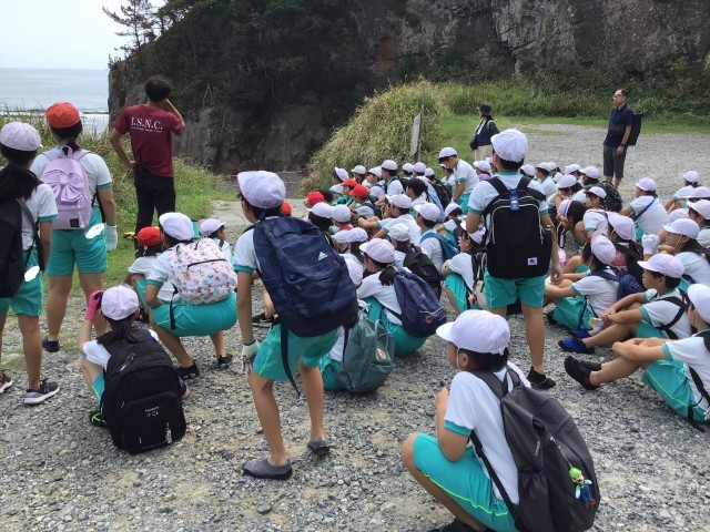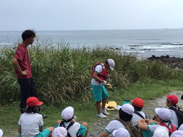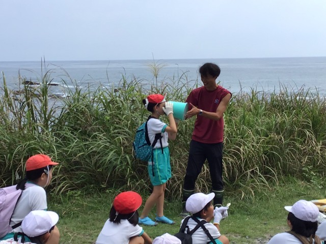 午前中の形は磯遊びです。活動の注意や、道具の使い方を教えてもらって、スタートです!