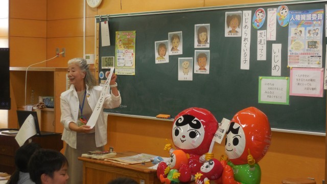人権擁護委員の齋藤様を講師にお招きして,「いのちを大切にすること」そして「みんなと仲よくすること」をテーマに,ご講話いただきました。関連するDVDを視聴した後,子どもたちの活発な意見交流がなされました。自分の考えと比べながら友達の感想や考えを聴き合う中で,子どもたち自身が「友達と仲よくすることの大切さ」や「いじめのない社会をつくっていこうとする気持ち」をさらに強くすることができた時間になりました。