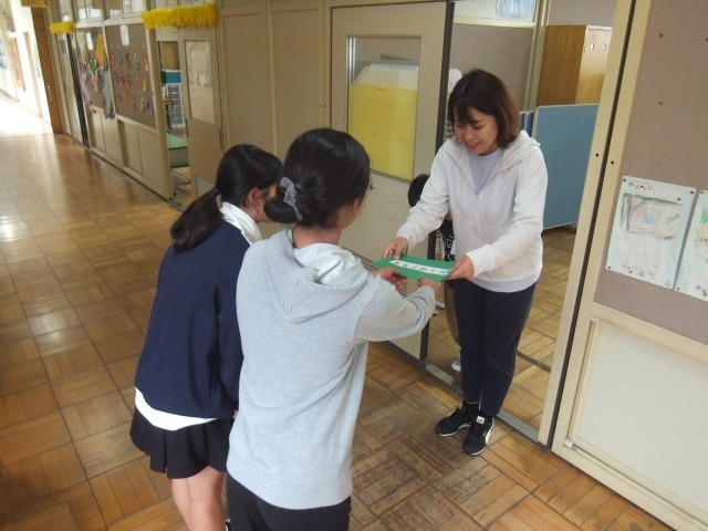 6年生は、朝や放課後に陸上練習を続けてきました。陸上担当の先生方に、陸上交歓会の報告もかねて、お礼の手紙を渡しました。
