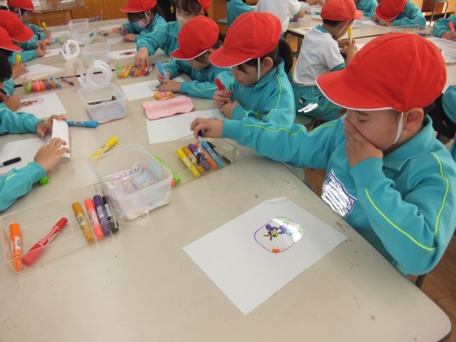 2年生は、バスに乗って、ムシテックワールドに行きました。展示コーナーでさまざまな生き物を見ました。次に、外に出かけて、一人1つずつ虫取り網を持ち、虫取りにチャレンジしました。それから、サイエンスショーに参加しました。最後に、お絵かきプラバン作りました。ムシテックワールドのマークや虫、イルカ、猫など自分の好きなデザインを決めて、色を塗ったり、名前を書き込んだりしました。自分のキーホルダーを作ることができました。