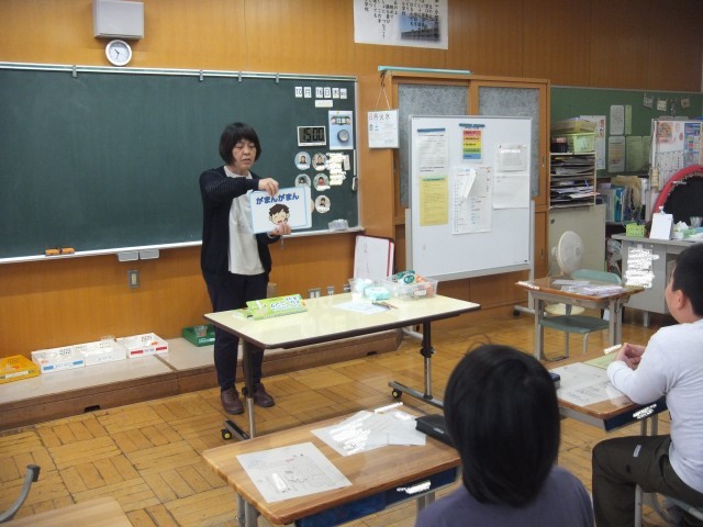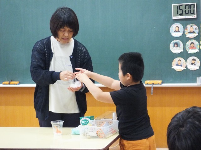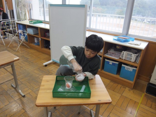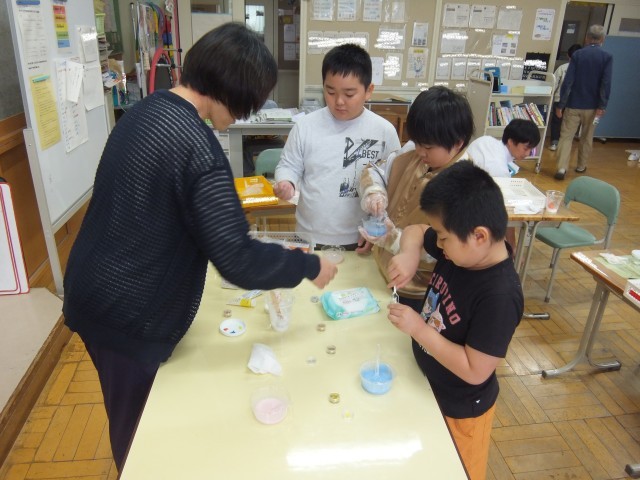 自分の気持ちを落ち着かせることができるようにするために、クールダウンにつながる活動について考えました。はじめに、アンガーコントロールフラッシュカードを使って、前向きな気持ちになる言葉を声に出して言い、今の自分の気持ちを自分自身で確認しました。それから、今回は、センサリーグッズとして、スライム粘土作りに挑戦しました。手順や注意点の説明を聞き、材料の分量をはかったり、色や飾りを付けたりしました。授業はじめに確認した気持ちカードに活動を通して変化した気持ちを表現することができました。