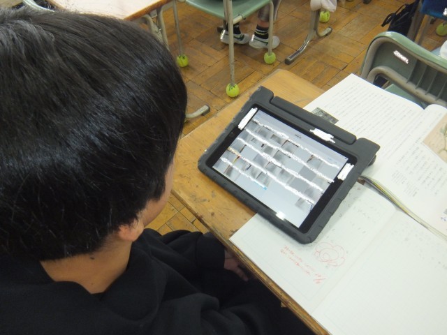 道徳の時間、牧野富太郎さんの伝記をもとに、牧野さんの生き方について考えました。牧野さんの話の中で、心に残ったことを一人ひとりが書き出し、タブレットを使って全員で共有しました。友だちの心に残ったことを聞いたり、自分の思ったことと比べたりしました。牧野さんの生き方を踏まえて、これからの自分の生き方や心構えについて真剣に考える姿が見られました。