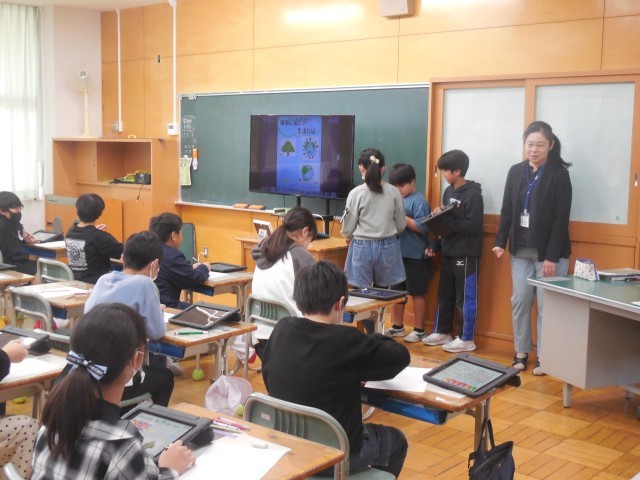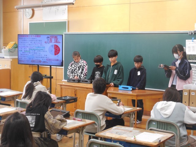 現在,2校時目に発表する学年が,これまでの学習の成果を発表しています。2校時の休み時間には特設合奏部の演奏発表,3校時目には,偶数学年の発表が予定されています。