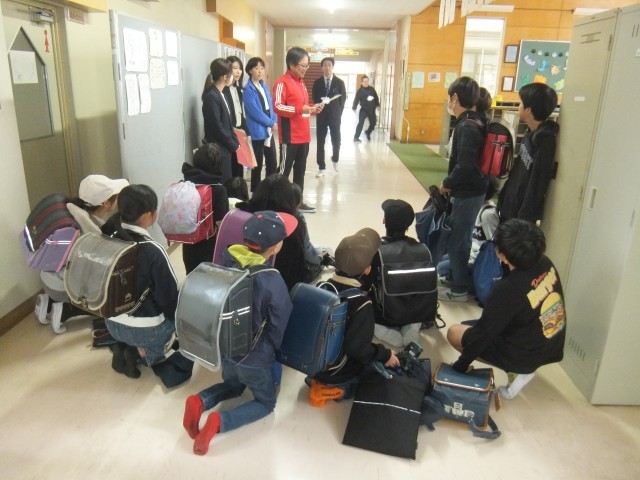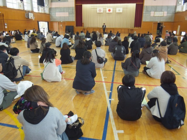 全保護者に体育館に集まっていただき、校長から「1つ目は「SNS」についてです。『使わないよりも正しく理由する』に考え方を変えていかなければならないこと、また、顔が分からない相手との連絡や写真などのやりとりは絶対にしないように、おうちでも話をしてほしいこと。2つ目は、「児童引き渡し訓練」についてです。万が一に備えた準備や訓練を進めておくことは大切であり、今後もご家庭と学校が連携をして安心安全な教育環境の整備に努めていくこと」について保護者の方々にお話をしました。その後、引き渡し対象児童の放送を聞きながら、順序よく引き渡し訓練を行いました。保護者の方々によるご協力のおかげで、混乱なく、スムーズに終えることができました。ありがとうございました。
