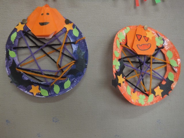 ひまわり学級では、季節のかざりを作りました。毛糸を上手に使ったり、まわりに折り紙を貼ったりして作品を仕上げることができました。