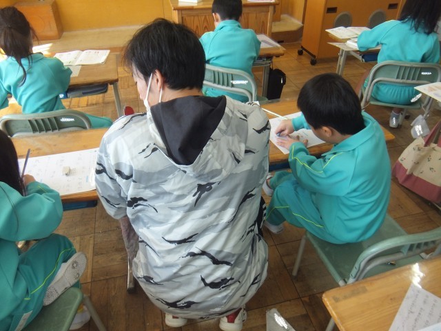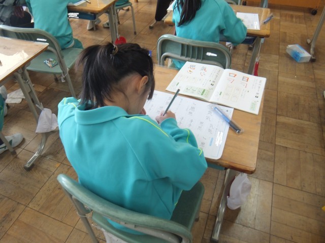 書写の時間、『おれ』がどの方向に書くのかに気をつけて、「日」「円」を練習しました。つぎに、『そり』がどの方向に書くのかに気をつけて、「気」「思」などを練習しました。全員が集中して取り組むことができました。