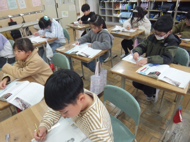 道徳の時間、神戸で起きた地震に関する話を読み、ふるさとについて考えました。子どもたちは、写真を見て、真剣に話し合いました。また、自分にとってのふるさとについても考え、「大切な人がいるところ」「好きな場所があるところ」「ほっとするところ」「たからもの」と発表することができました。