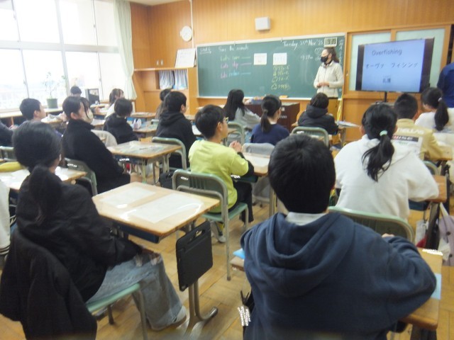 外国語の時間、AETの先生から、写真やイラスト等を見ながら、世界がかかえる問題について聞きました。また、4R(Refuse、Reduce、Reuse、Recycle)についても話をしてもらいました。それから、環境問題に関するすごろくゲームをグループごとに楽しみました。