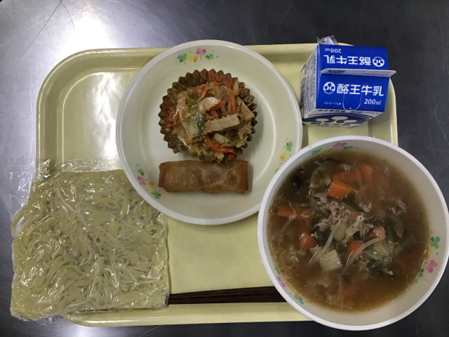 みそタンメン、牛乳、ミニ春巻き、中華サラダ