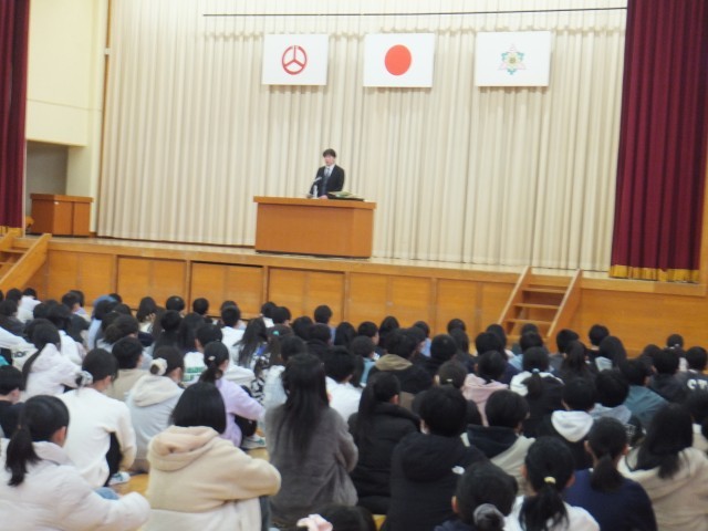 全校集会のとき、校長先生から「日本全国、そして福島県、ここ郡山市でも、かぜやインフルエンザが流行っています。手洗いやうがい、マスクの着用をして、自分で予防対策を続けましょう。」「『みどりのきょうだい』は緑ケ丘第一小学校の自慢の一つです。上級生は下級生に優しくめんどうを見ながら、下級生は上級生の話をよく聞いて、ルールを守りながら活動できる姿はすばらしい。これからも先輩たちが築いてきた伝統を守っていきましょう。」というお話がありました。