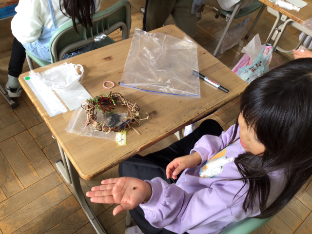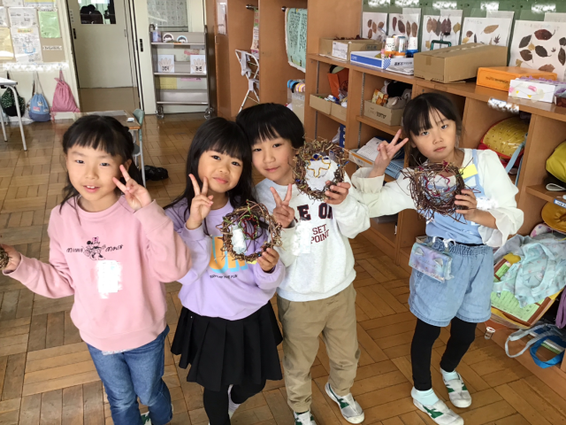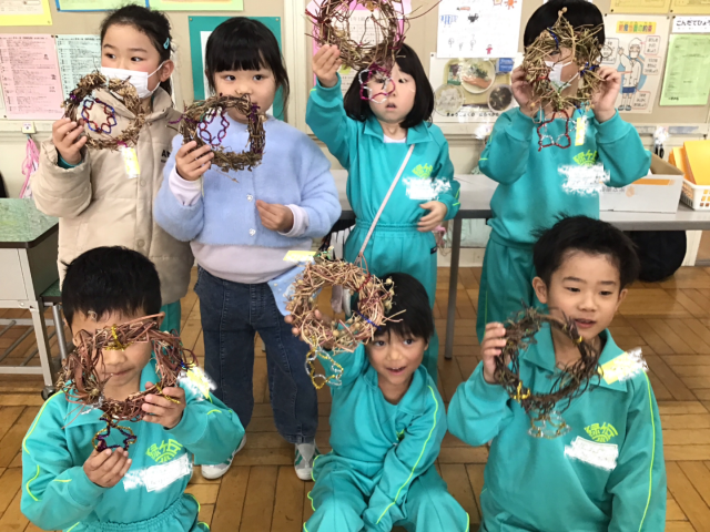 生活の時間、大切に育ててきたあさがおのつるを使って、自分だけのリースを作ることができました。