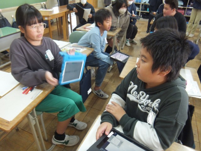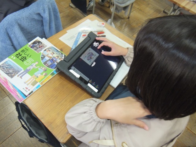 社会の時間、どうして日本の自動車を外国で生産するのかを調べました。はじめに、自分の予想を書きました。それから、さまざまな資料の中から、自分が必要な資料を選び、その資料をもとに「輸送費がかかる」「輸出時間がかかる」「その地域に合った車を生産できる」など、自分の考えをまとめました。自分が考えたことや思ったことを友だちに伝え合い、資料の選び方をアドバイスしたり、共感したりする姿も見られました。