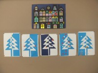 12月の掲示を作りました。色画用紙を折りたたみ、それを広げて雪だるまの顔やトナカイの顔、サンタさんのひげの部分にしました。一人ひとり表情豊かな作品に仕上がりました。