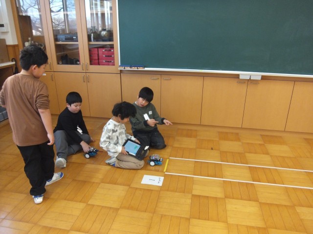 ロボット型教材m-Botを使って、プログラミング教育に取り組みました。担任がレベル1から5までのコースを作って切れたので、自分で挑戦したいコースを決めてチャレンジしました。試したり、失敗したりしながらも、友だちと協力し合う姿が見られました。