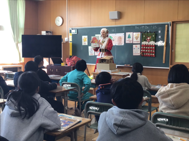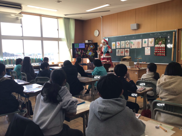 外国語の時間、AETからクリスマスの起源についてのはなしがありました。写真やイラストなどを使い、丁寧に教えてくれました。また、クリスマスに関する言葉を英語で言う練習もしました。