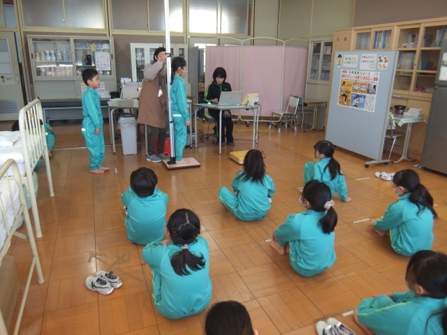 1、2年生の身体計測を行いました。あいさつきちんとし、養護教諭の話をよく聞き、落ち着いて取り組むことができました。身長と体重の伸びを確認しました。
