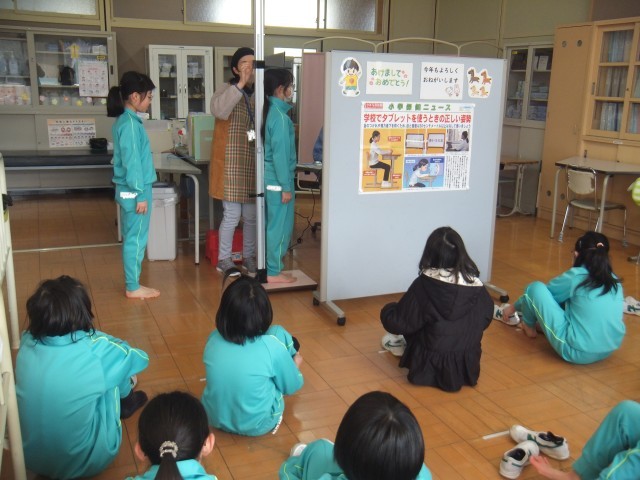 3、4年生も身体計測を行いました。落ち着いて、身長と体重を測ることができました。
