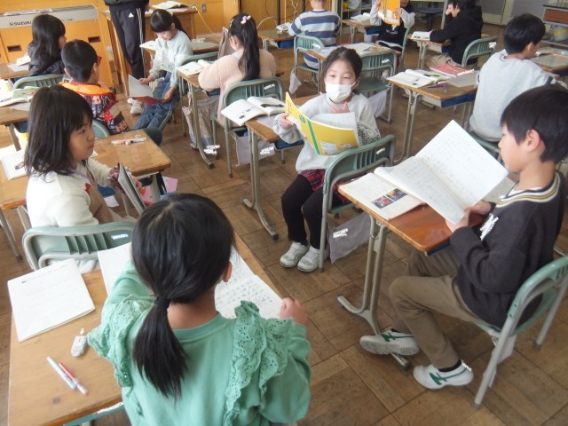 国語の時間、「ロボット」を音読し、どのようなことを説明しているかを読み取りました。さまざまな新しいロボットの話があり、そのロボットは、どんなときに、何をして助けてくれるかを大事なことばに注目してノートにまとめました。今回は、どんなロボットがあったらいいか、その理由を考えました。自分が考えたロボットについて、グループの友だちに伝え合うことができました。友だちの発表をきちんと聞く姿が見られました。