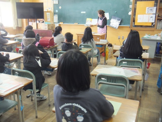 4年生にとって、今年初めての『絵本の窓』の方々による読み聞かせでした。落語絵本やバナナのおもしろい話の本を読んでくれました。今年もよろしくお願いします。