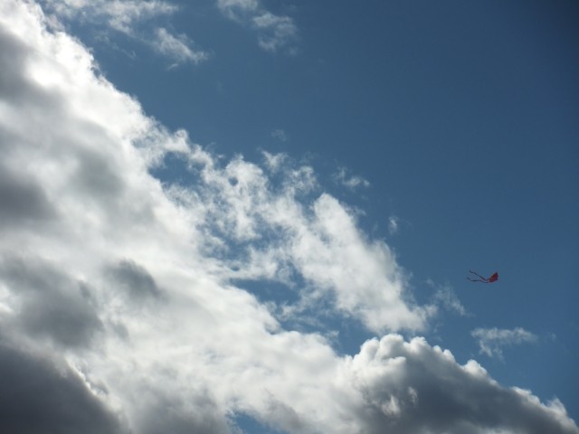 カラービニール袋やストロー等で、凧作りをしました。風があったので、凧あげを楽しみました。空高く上がりました。