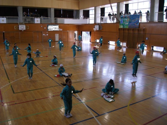 3年生のなわとび記録会がありました。全員、3分間持久跳び、後ろ跳び(1分)、あや跳び、または交差跳び(1分)、二重跳び(20秒)に挑戦しました。今日は、おうちの方々が来てくれて、応援をしてくれたので、自己ベストをめざして、いっしょうけんめい跳ぶ姿が見られました。なわとび運動は全身を使う運動なので、体力作りにも適しています。授業や休み時間、週末などにも取り入れて、体つくりを進めていきたいと思います。
