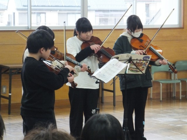 特設合奏部が団内発表会を行いました。6グループに分かれて、自分たちで演奏曲も決めて練習を続けてきました。一人ひとりの技術力の向上、小編成でのアンサンブルの経験を積むこと、さまざまな楽曲に触れることなどを目的にいっしょうけんめい取り組んできました。今回の演奏会には、保護者の方々、ご兄弟、先生方がたくさん来てくれました。緊張しながらも達成感を味わうことができました。保護者の方々にはお忙しい中、お越しいただき、ありがとうございます。また、日頃の励まし、送迎等、たいへんお世話になっております。今後は、6年生の卒団式、体験会などを計画しています。引き続き、ご協力お願いします。