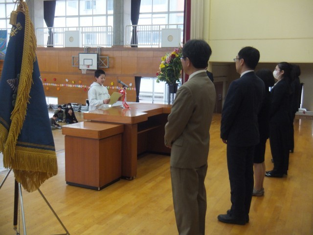 27日(金)、離任される先生方とのお別れの式を行いました。今までお世話になった先生方に、感謝の気持ちを伝えることができました。卒業生や保護者の方々も来てくれました。先生方と一緒に過ごした日々を忘れずに、緑ケ丘第一小学校のみんなでがんばっていきます。
