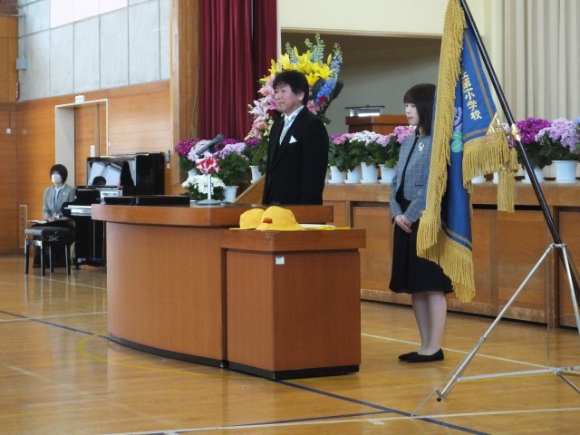 令和8年度は、42名の1年生が入学しました。ご入学おめでとうございます。1年担任の呼名のあと、一人ひとりがしっかりと返事をすることができました。校長先生から、返事のすばらしさをほめてもらいました。『あ(あいさつ)・ひ(人に優しく)・る(ルールを守る)』についての話もありました。これから、みどりっこの一員として、全校児童と先生方で力を合わせて笑顔あふれる緑ケ丘第一小学校にしていきたいと思います。来賓の方々からもお祝いの言葉をいただきました。6年生代表児童からは、緑ケ丘第一小学校の楽しいところについての話がありました。安心安全な学校生活を送ることができるようにしていきます。