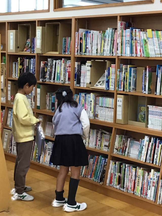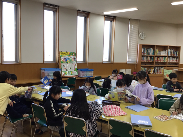 学校図書の先生から図書室の利用の仕方を説明してもらいました。今年度初めての本の貸し出しを楽しみにしていました。自分で2冊を選び、すぐに本を開いて読む始めていました。