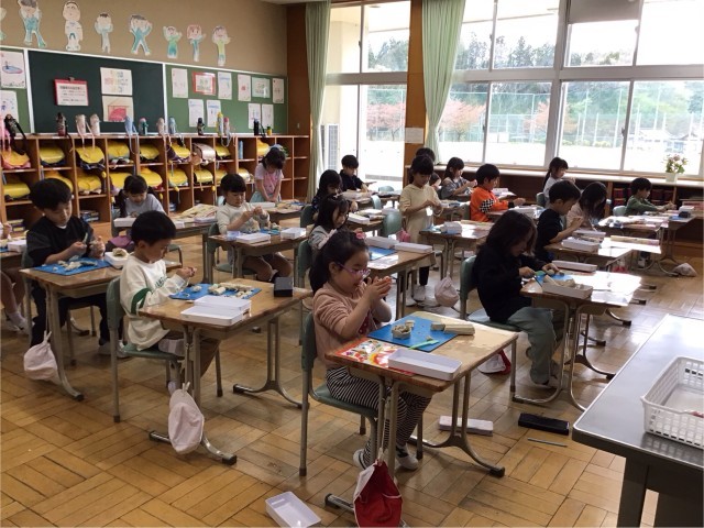 1年生は図工で初めて粘土を使った活動を行いました。今日のテーマは「ごちそうを作ろう」。お寿司やケーキ、果物やドーナツ、おいしそうなごちそうを楽しんで作ることができました。