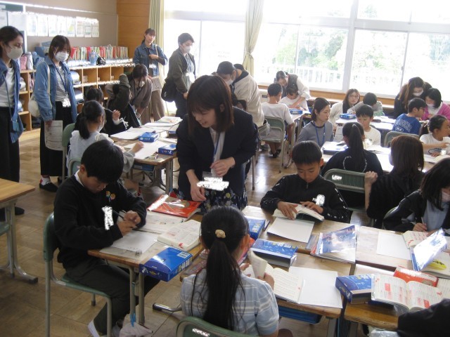今年度はじめての授業参観が行われました。多くの保護者の方々に来ていただき、お子さんの様子を見ていただきました。おうちの人を見つけると、安心して、最後までがんばることができました。