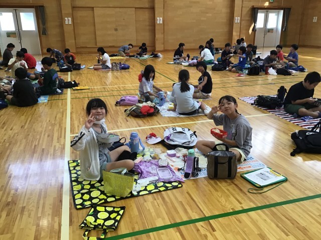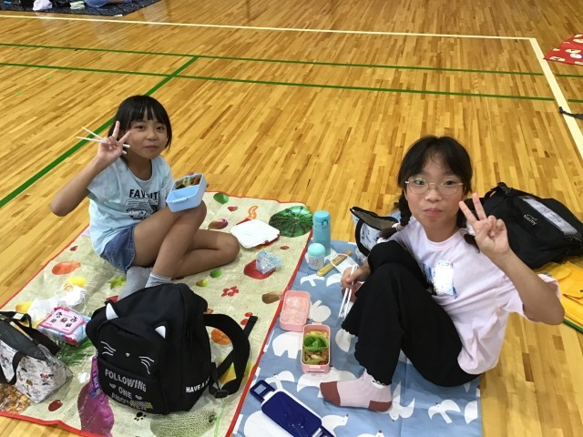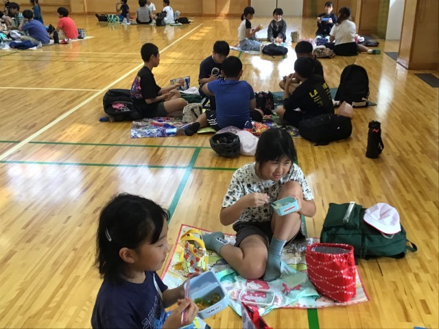 ほっとあたみ(熱海多目的交流施設)の多目的ホールで昼食のお弁当タイムです。