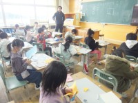 昨日で今年度の給食は終了となりました。そのため今日はおうちの人が作ったお弁当です。どの子も笑顔満開、お弁当をおいしくいただいていました。中には、朝お母さんと一緒に、卵焼きを作って入れてきた子もいました。