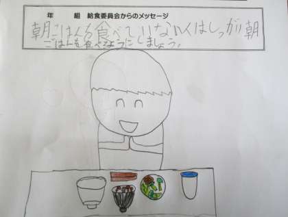 〜給食委員会の朝食メッセージ・給食に関するポスターを、1日1枚ずつご紹介しています。各クラス1枚ずつ作成されました。掲載は順不同です。〜
